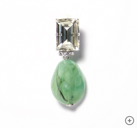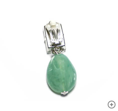 Ohrclip mit Kristall 18x13 Rechteck silvershade Behang jadegrün Plexi verarbeitet.