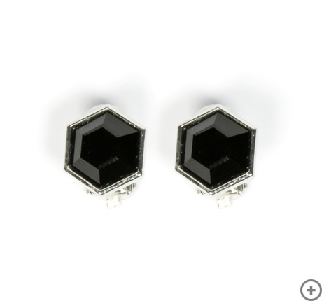 Ohrclip mit Kristall schwarzen 6eck verarbeitet.