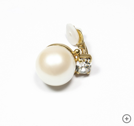 Ohrclip mit Kristall achteckig und 14mm Creme Perle verarbeitet.