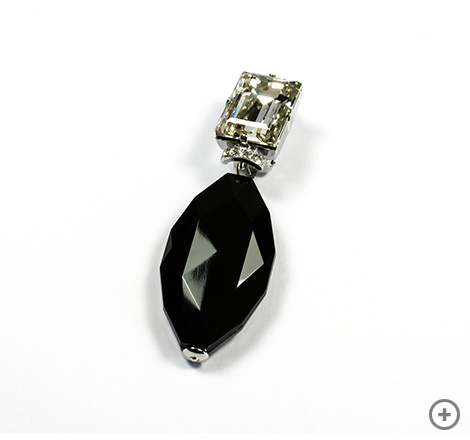 Ohrclip mit Kristall verarbeitet, cristall/Behang jet Plexi.