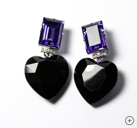 Ohrclips mit Kristall verarbeitet, Tanzanite/Behang Plexi.