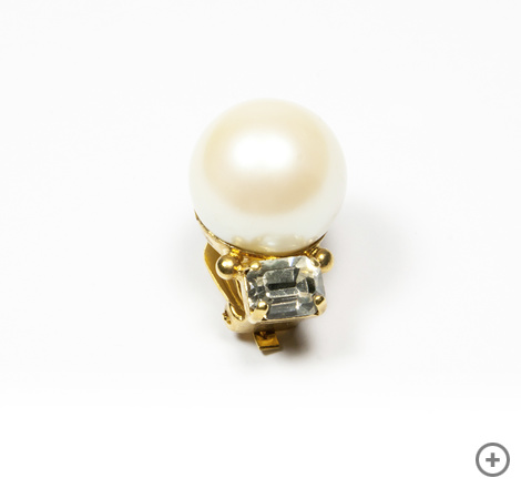 Ohrclip mit Kristall achteckig und 14mm Creme Perle verarbeitet.
