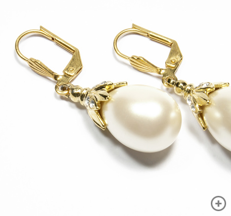 Ohrbrisurhaken mit Kristallen von Swarovski® und Perle Tropfen creme verarbeit.
